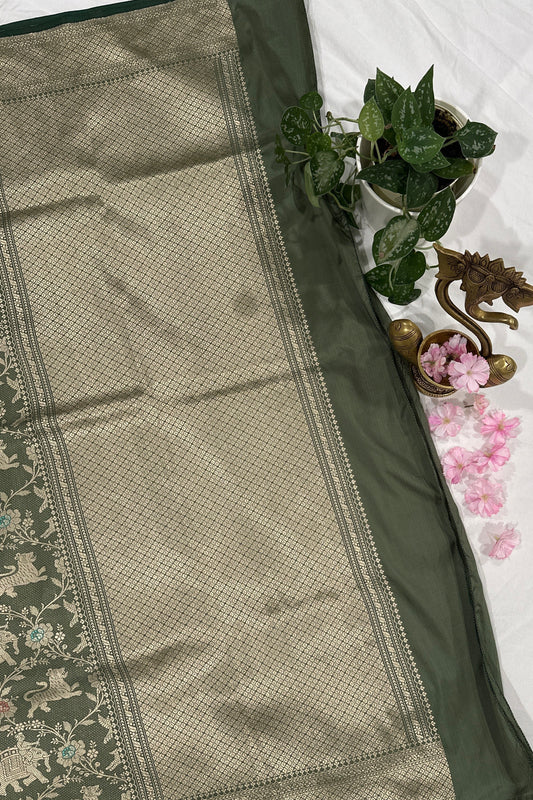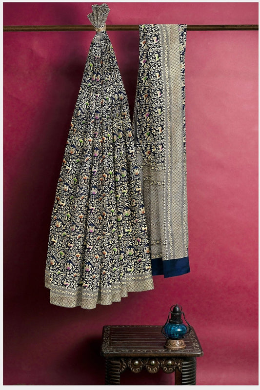 Banarasi Double Katan Silk Shikargah Meena Blue Saree