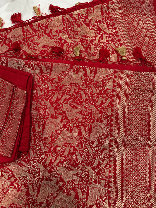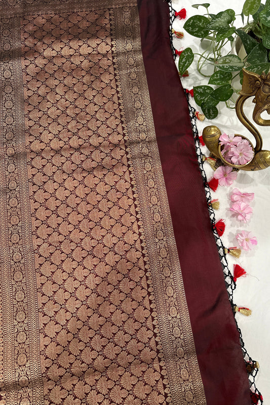 Banarasi Double Katan Silk Shikargah Maroon Saree