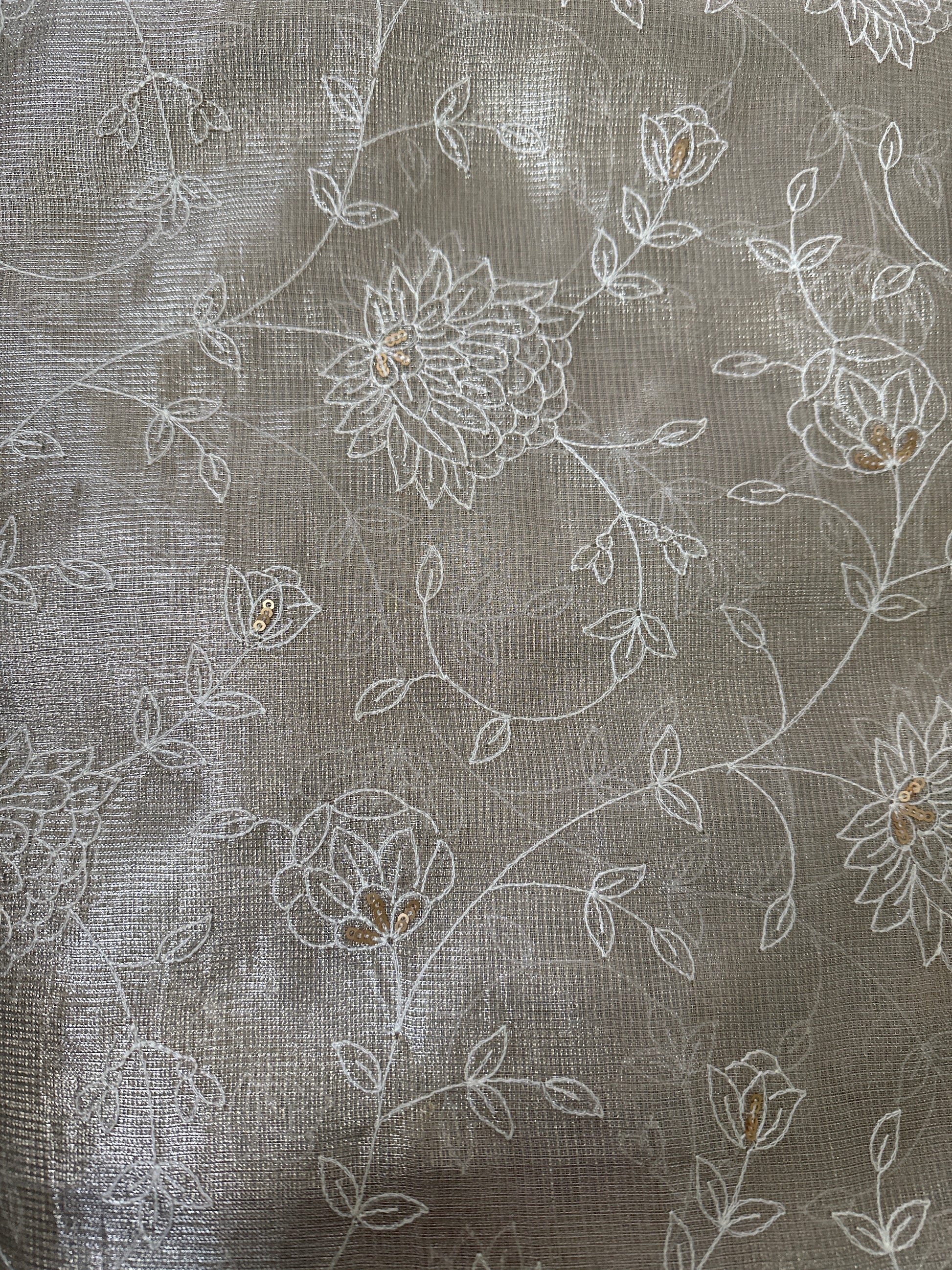 Kota Tissue All Over Embroidery Beige saree